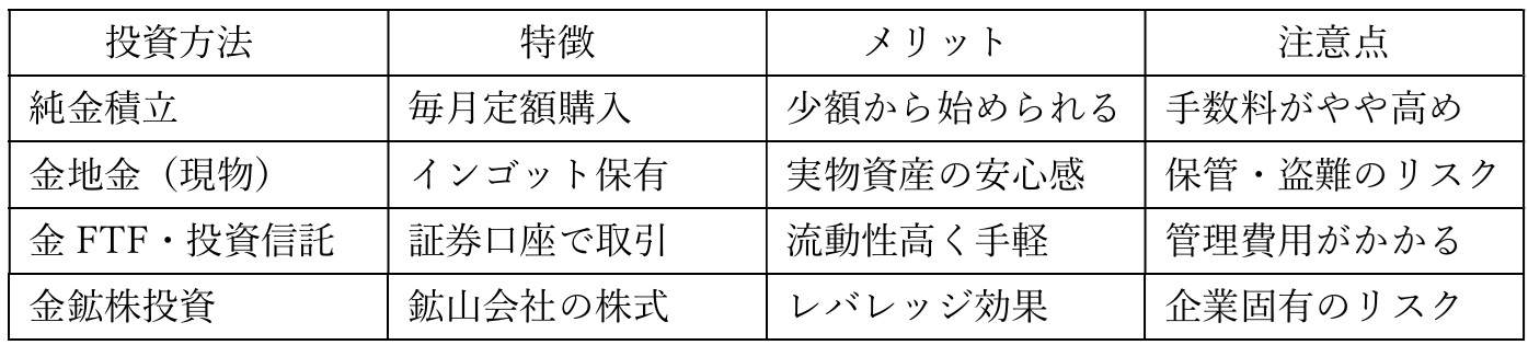 金投資の方法と特徴