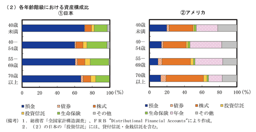 次に、老後の金融資産の保有資産構成比について日米を比較してどのような違いがあるのかを見てみます。